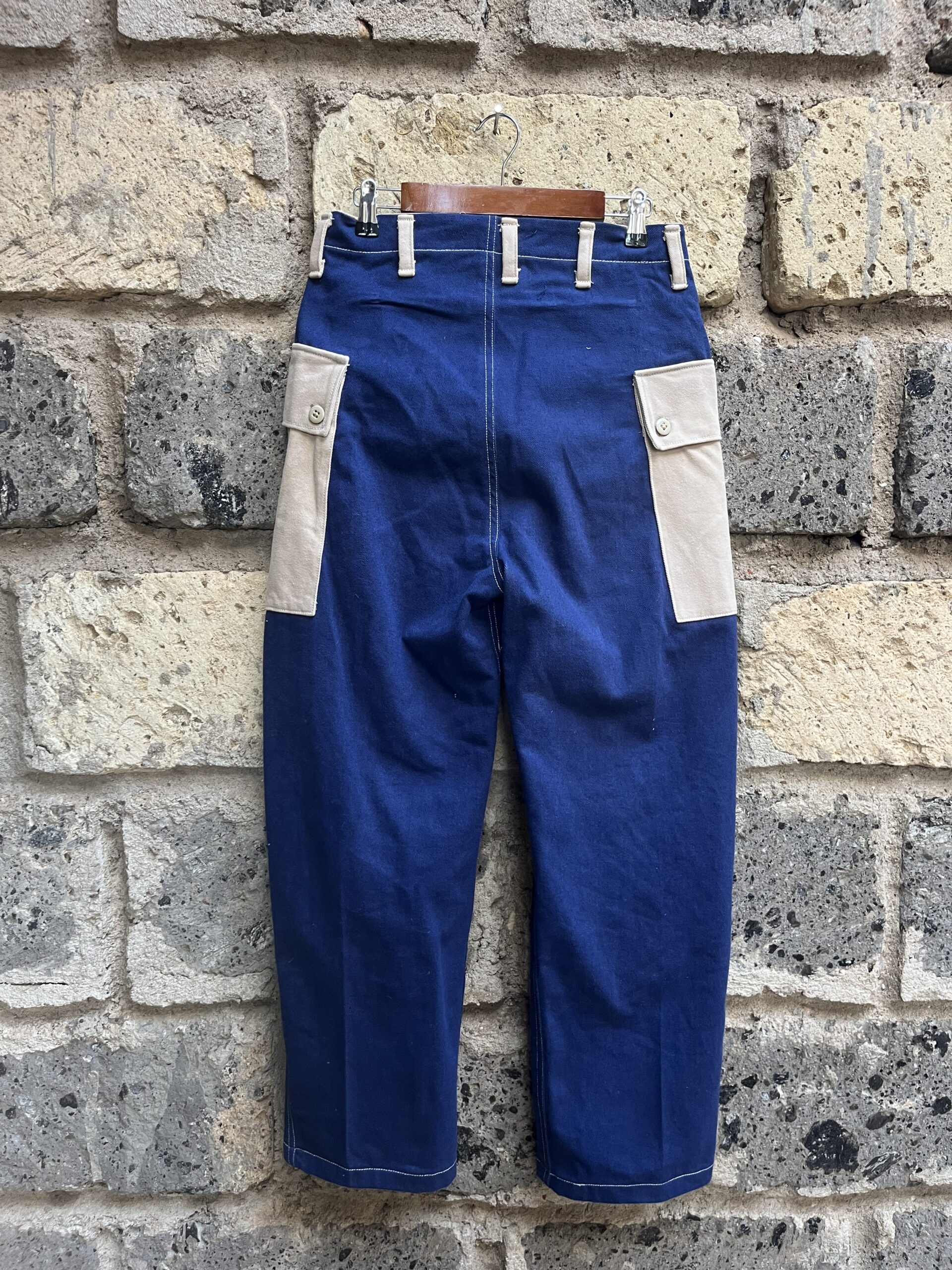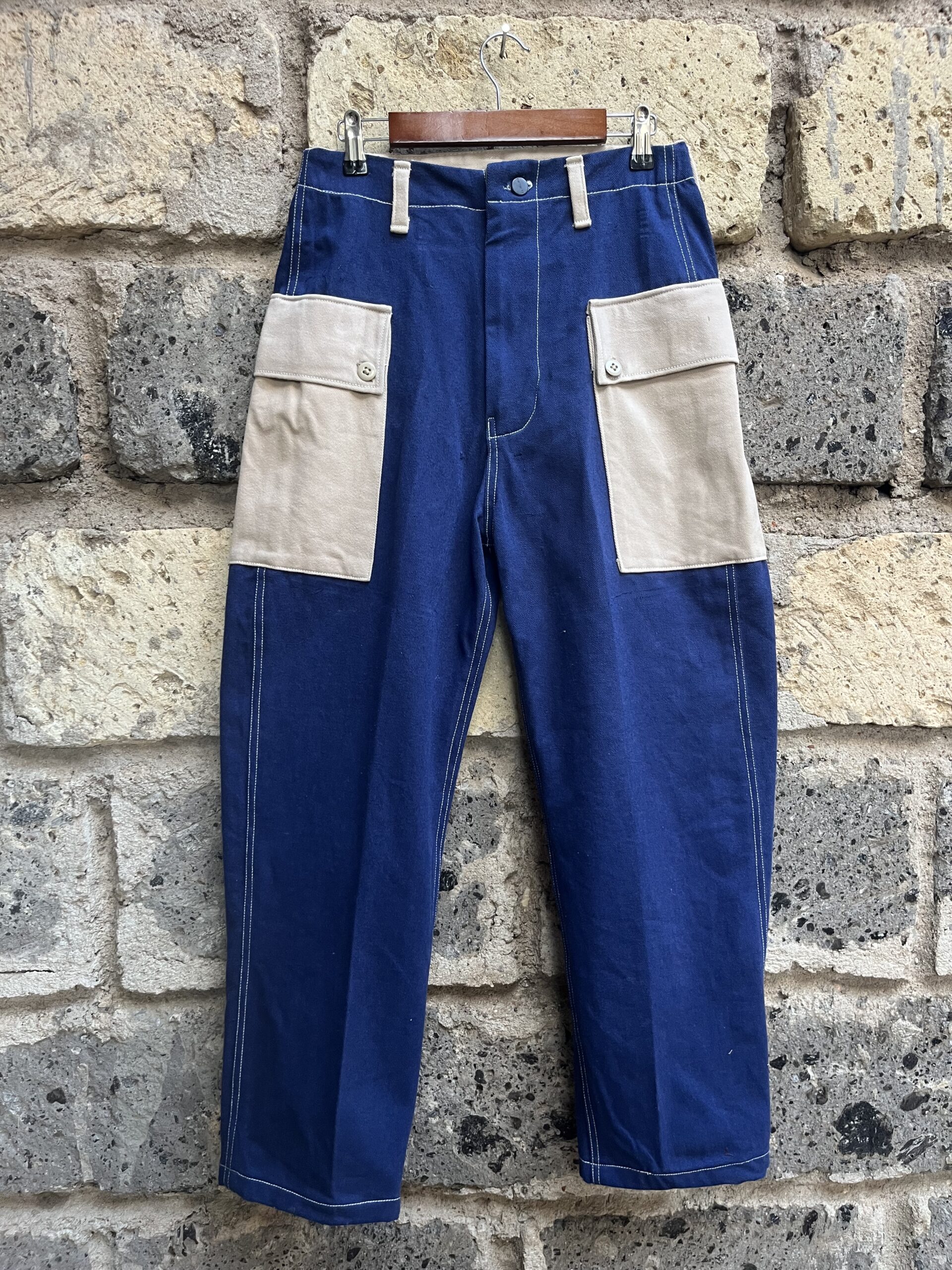One of a kind, handmade utility pant salvaged from vintage fabric/material.