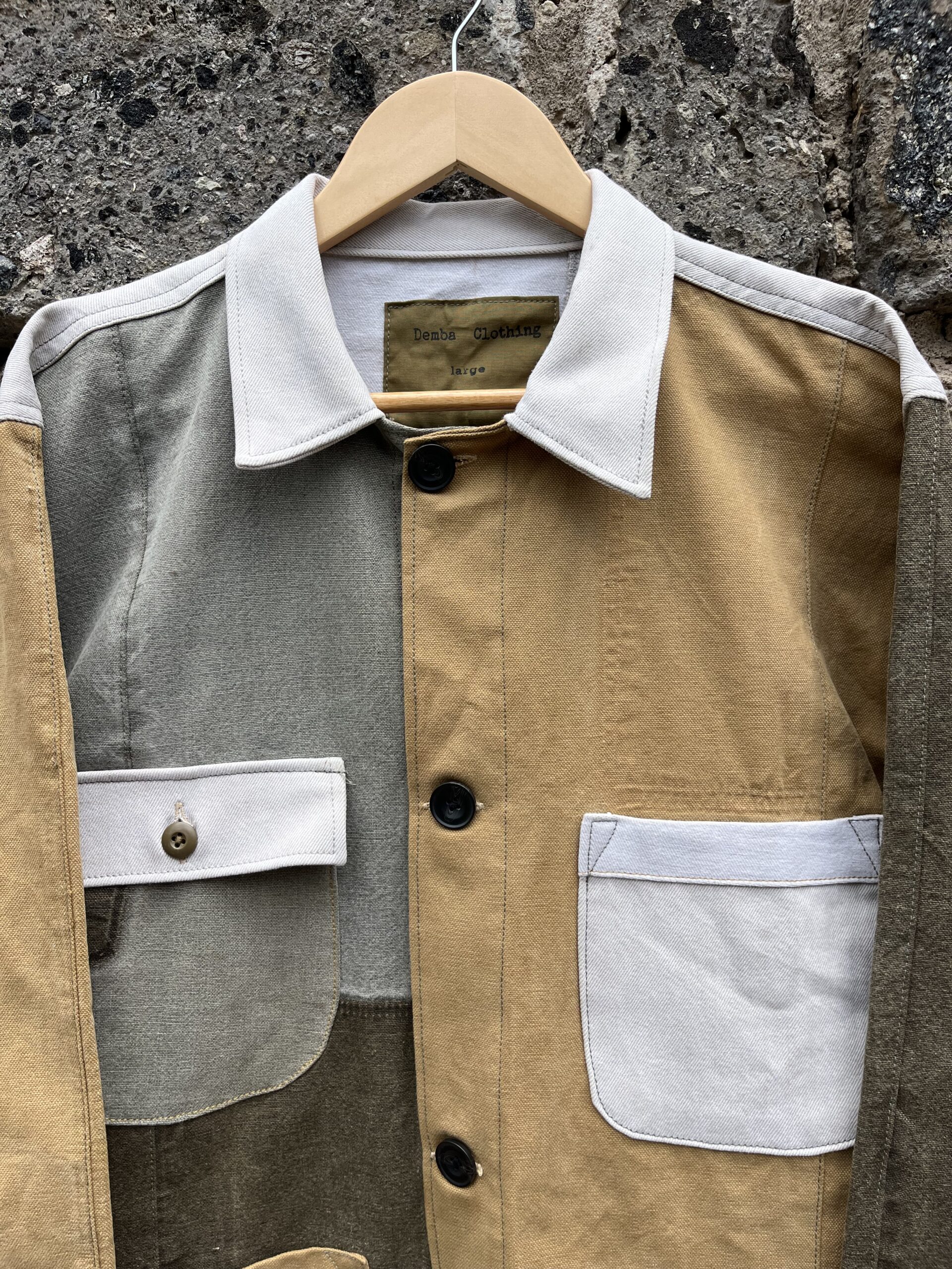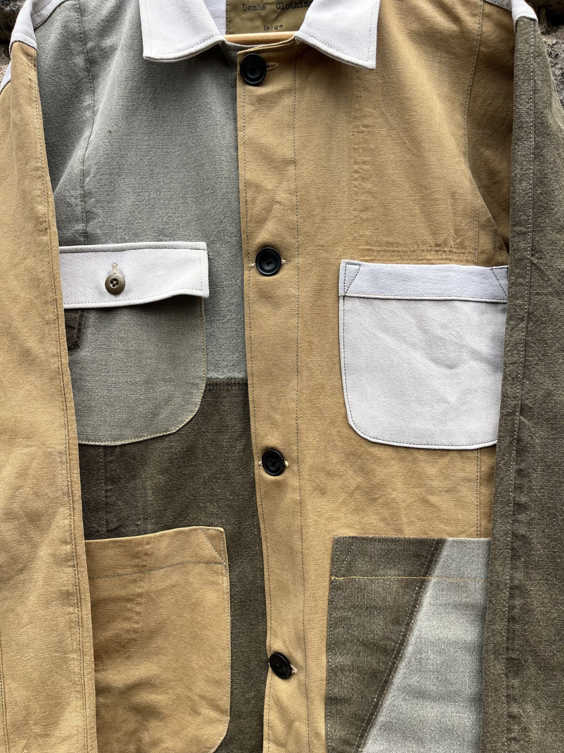One of a kind, handmade chore jacket salvaged from vintage fabric/material.